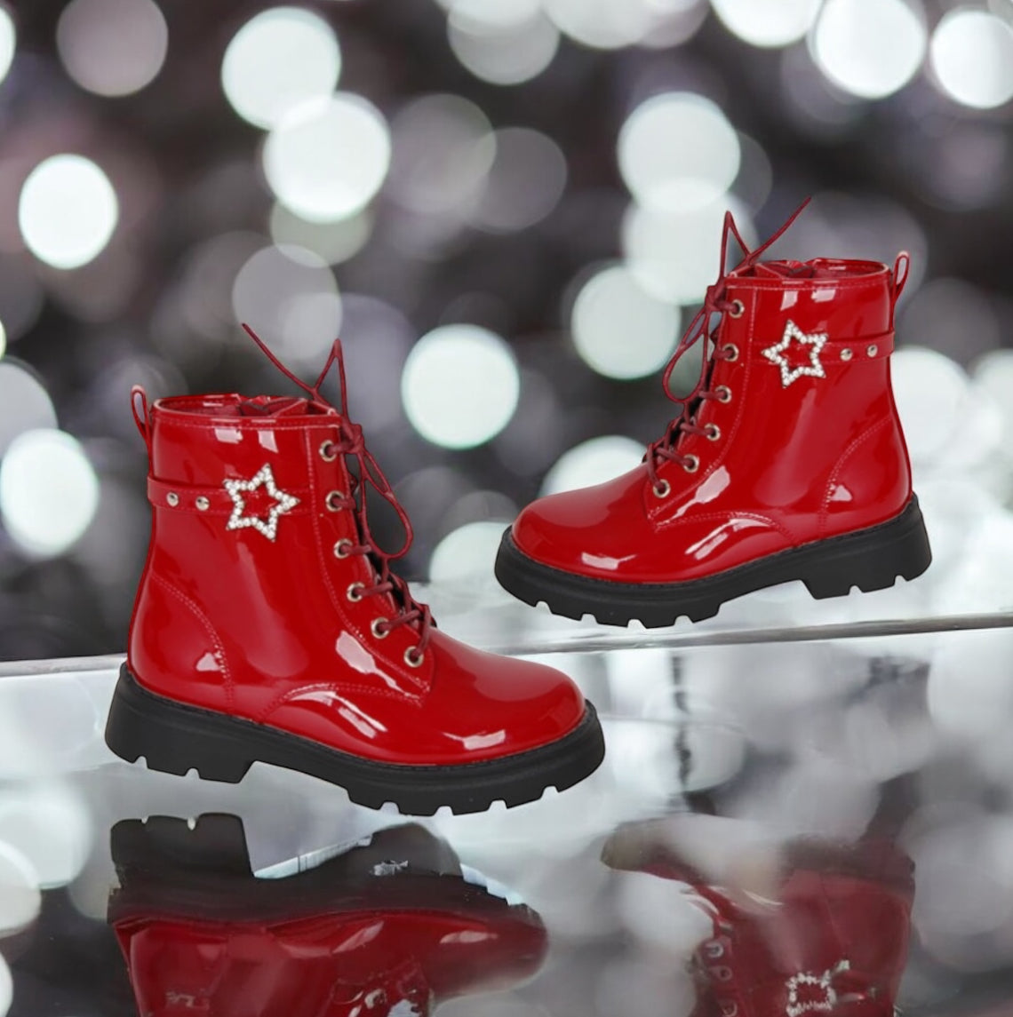 Κόκκινο μποτάκι με φερμουάρ και κορδόνι